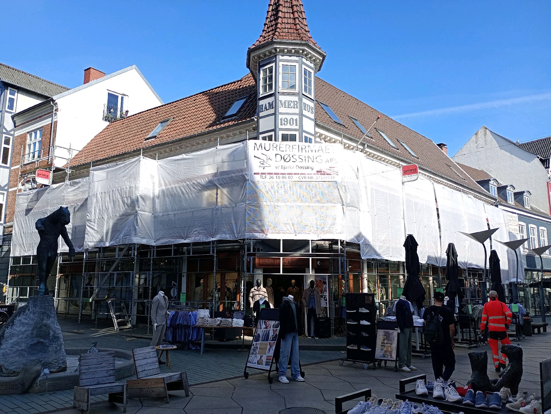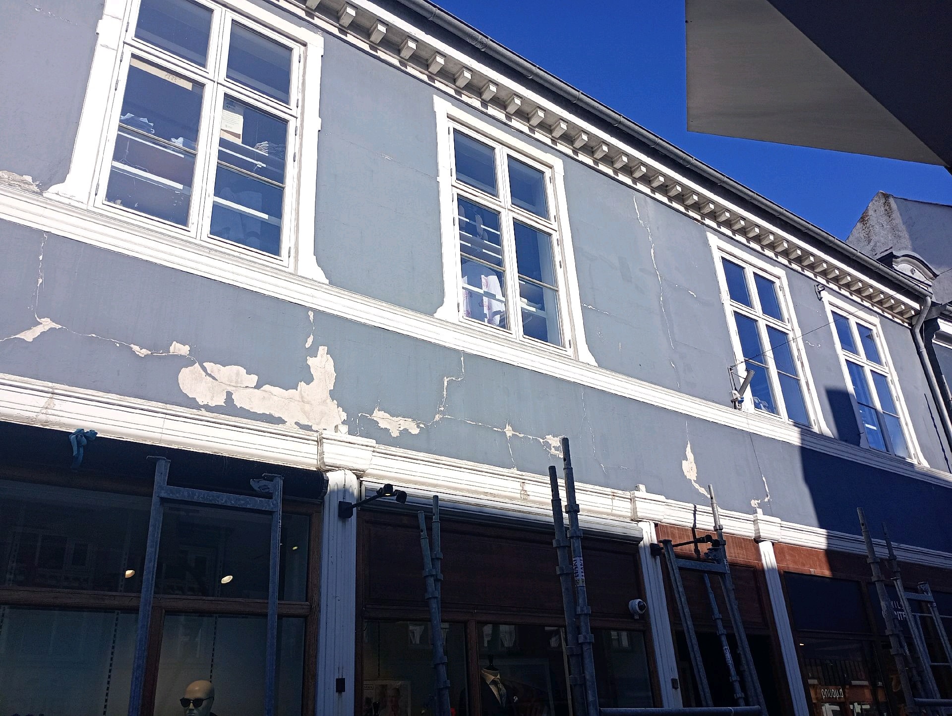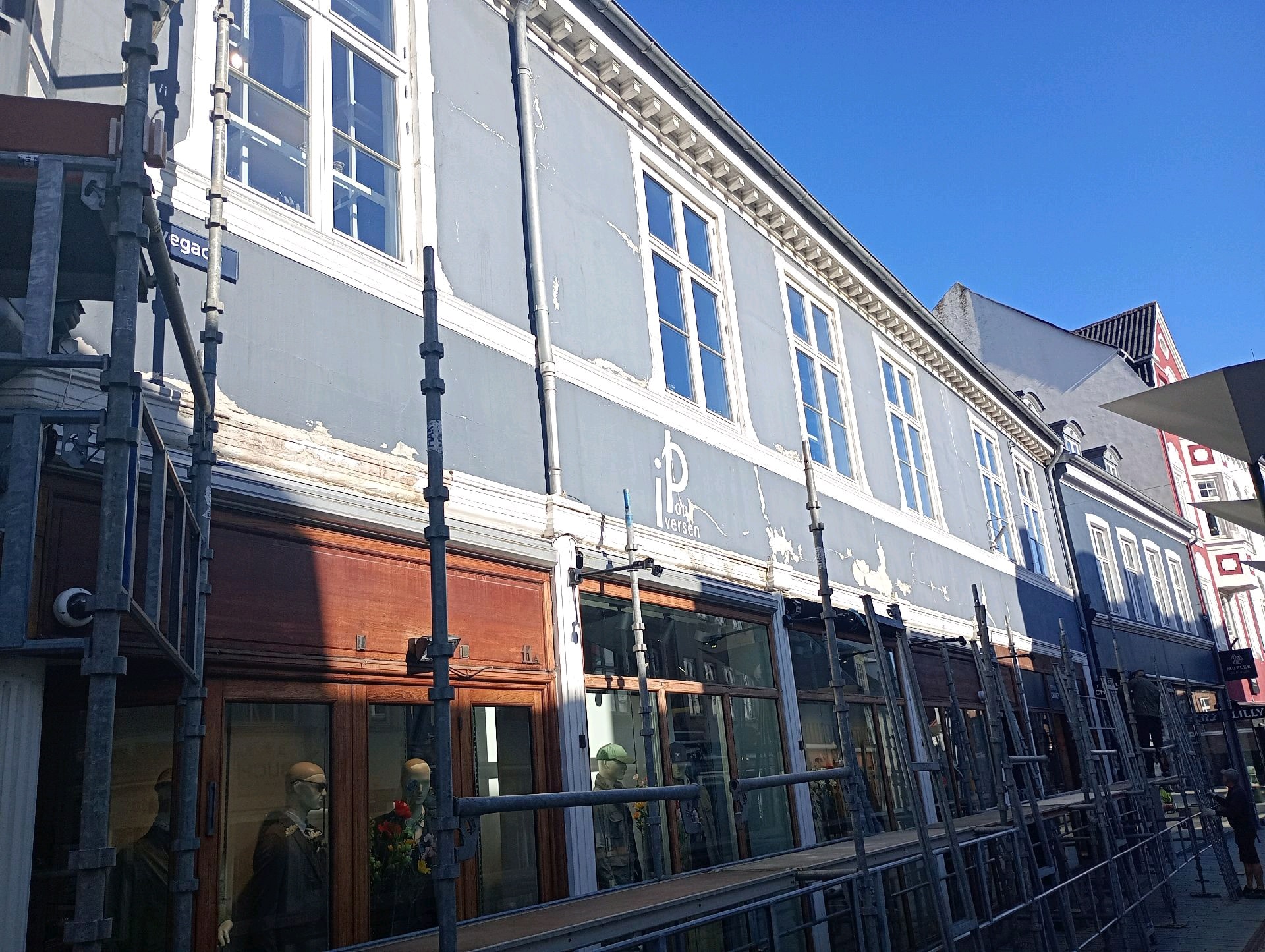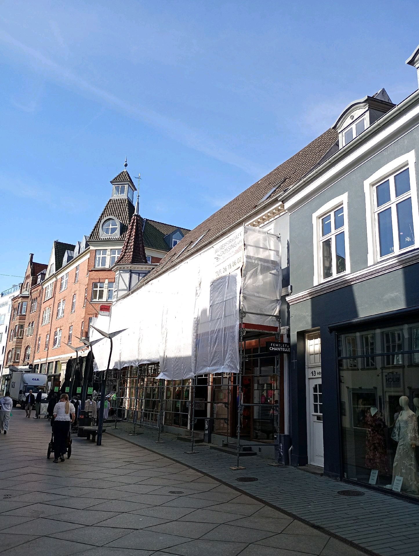 Vi har netop afsluttet en flot facaderenovering midt på Strøget i Vejle – lige i tide til sommerferien! 🌞