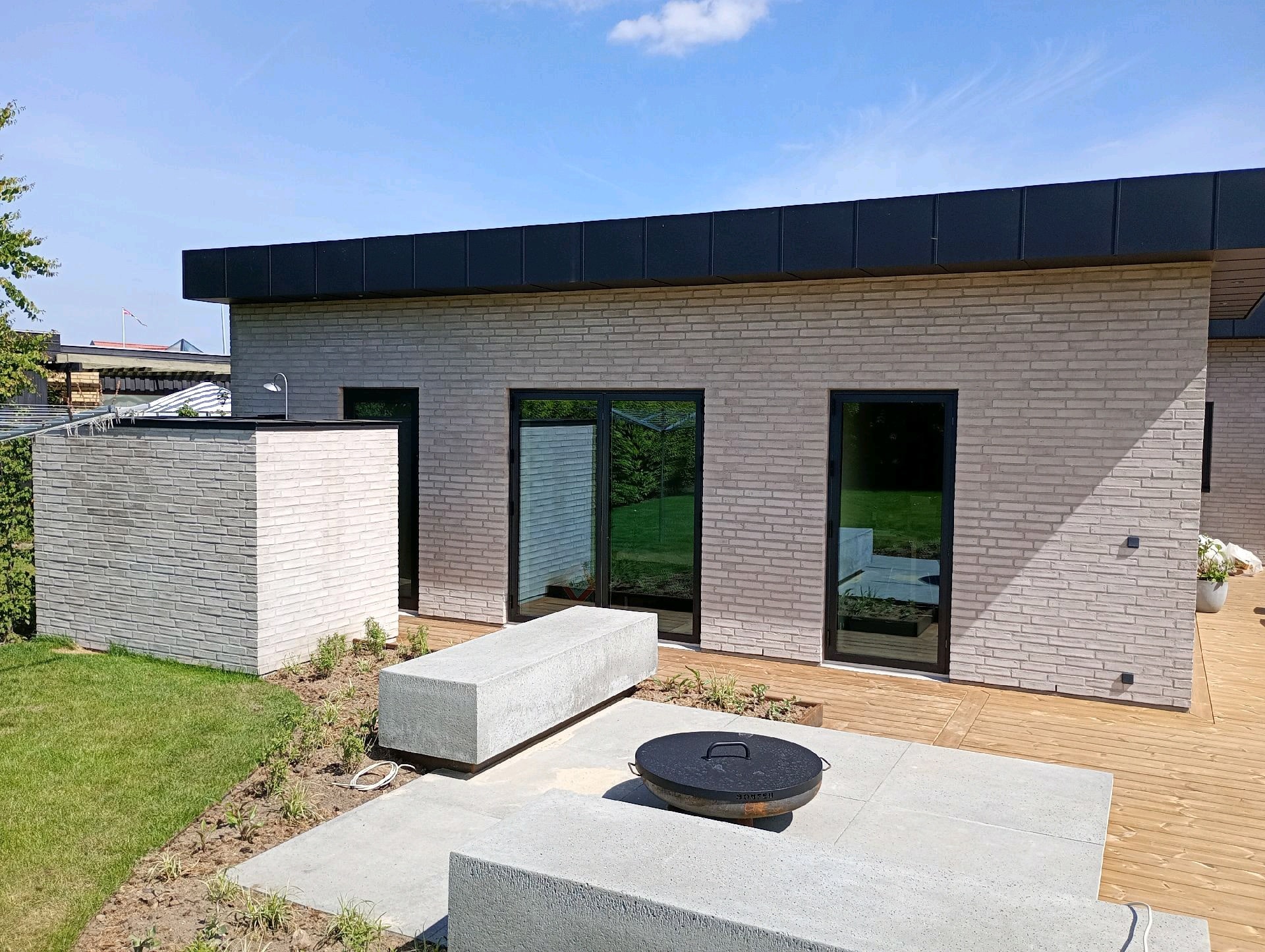 15. august 202528. maj 2025 Skalmuring af hus i Fredericia, med muret pejs og ude bruser 🚿 Huset er muret i RT 437 Prima Como fra Randers Tegl 🧱 Felt